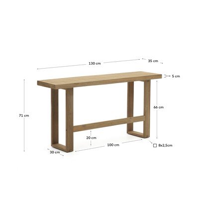 Drewniana, w naturalnym kolorze, szerokość 130 cm, głębokość 35 cm, wysokość 71 cm