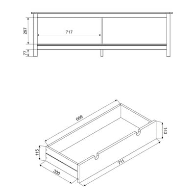Drewniana szafka pod telewizor, atrakcyjna, praktyczna, rozmiar odpowiedni dla telewizora 55" lub 65". Montaż wymaga śrubokręta i młotka.