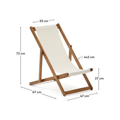 Leżak wykonany jest z litego drewna akacjowego, które zostało pokryte olejem i wykończone z efektem drewna tekowego. Użyte drewno posiada również certyfikat FSC™ 100% (Chain of Custody), który gwarantuje odpowiedzialną gospodarkę leśną. Siedzisko wykonane jest z tkaniny odpornej na działanie promieni słonecznych, zapewniającej trwałość i stabilność materiału nawet przy częstym użytkowaniu na zewnątrz.