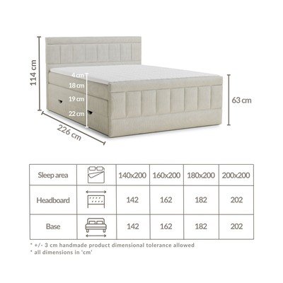 Beżowe łóżko kontynentalne ze schowkiem 180x200 cm Caya – Maison de Rêve