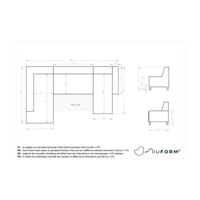 Rozkładany/ze schowkiemPrawostronny/w kształcie litery UCiemnoniebieskiPowyżej 4 osóbSzerokość 330 cm