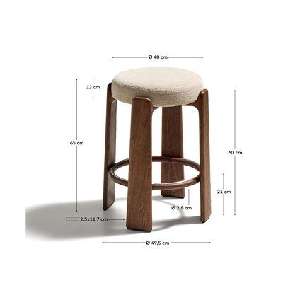 Z litego drewna jesionowegoZ szeniluBeżowy/w ciemnym naturalnym kolorzeWysokość siedziska 65 cm