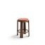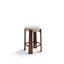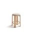 Wygodne, okrągłe siedzisko hokera obito tkaniną szenilową o wyraźnej strukturze. Materiał to poliester z recyklingu, pochodzący od dostawcy z certyfikatem Global Recycled Standard, co gwarantuje mniejsze zużycie zasobów i surowców pierwotnych. Dodatkowo tkanina posiada certyfikat OEKO-TEX® STANDARD 100, świadczący o ekologicznie bezpiecznej i odpowiedzialnej produkcji.
