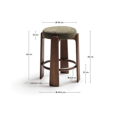 Z litego drewna jesionowegoZ szeniluZielony/w ciemnym naturalnym kolorzeWysokość siedziska 65 cm
