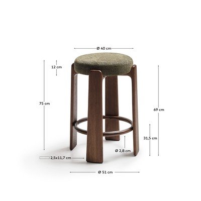 Z litego drewna jesionowegoZ szeniluZielony/w ciemnym naturalnym kolorzeWysokość siedziska 75 cm