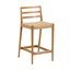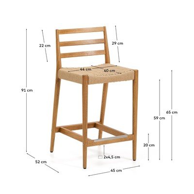 Siedzisko tego hokera zostało ręcznie utkane z trwałego sznura papierowego, co gwarantuje jego wytrzymałość i wygodę. Oparcie z poziomymi lamelami oraz praktyczny podnóżek zapewniają komfort podczas dłuższego siedzenia.