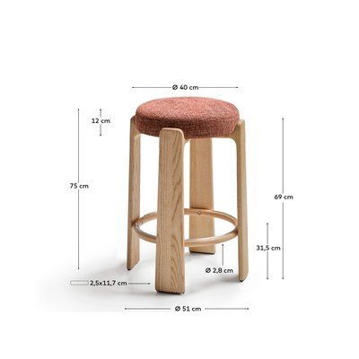 Z litego drewna jesionowegoZ szeniluW kolorze terakoty/w ciemnym naturalnym kolorzeWysokość siedziska 75 cm