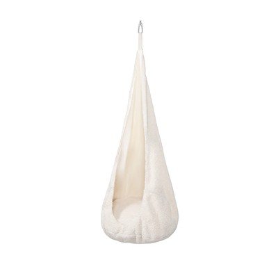 Huśtawka ma przyjemny kształt kokonu i jest wykonana z miękkiego, materiału z przyjaznym dla skóry wykończeniem. Jednocześnie jest wytrzymała i gotowa do codziennej zabawy. Dla jeszcze większego komfortu, w zestawie znajduje się miękka poduszka, która zapewnia wygodę podczas bujania lub czytania ulubionych książek.