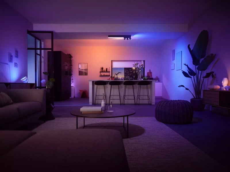- Możliwość rozszerzenia dzięki Hue Bridge: Po podłączeniu do Hue Bridge (nie znajduje się w zestawie) można odblokować pełny zestaw funkcji, takich jak sterowanie oświetleniem poza domem, planowanie automatycznego włączania i wyłączania.