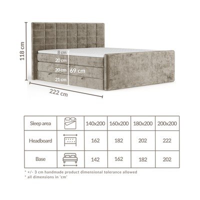 160x200 cmZe schowkiemTapicerowaneZ materacem/z topperemZ tkaniny szenilowejWykonane ręcznie/z łatwym montażemJasnobrązowe