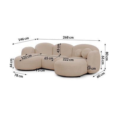 Jasnobrązowy narożnik z materiału bouclé (prawostronny/z szezlongiem) Orbit – Ropez