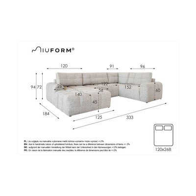 Chcesz mieć pewność, że Twoja sofa będzie idealnie dopasowana? Zalecamy wybór wszystkich części wyłącznie z oferty poszczególnych modułów. Jest to jedyny sposób na zapewnienie jednolitego odcienia koloru dla całego zestawu. Ponieważ w przypadku łączenia gotowych zestawów z oddzielnymi modułami, ich pokrycia mogą nieznacznie różnić się kolorem. Jeśli jednak kupisz kompletny zestaw, możesz mieć pewność, że odcień będzie jednolity.