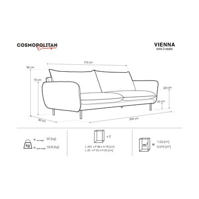 Jasnoniebieska aksamitna sofa 200 cm Vienna – Cosmopolitan Design