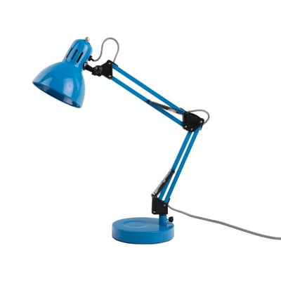 Z metalowym kloszem, metalowa, do kontaktu, niebieska, wysokość 52 cm