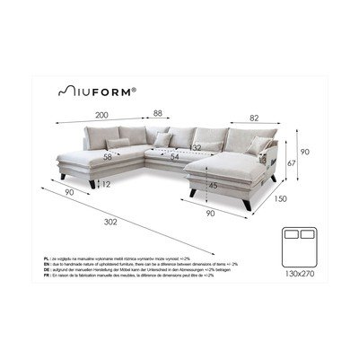 Marka Miuform produkuje praktyczne i designerskie sofy, które mają na celu zaspokojenie wszystkich potrzeb klientów. Jednocześnie kładzie nacisk na szacunek dla środowiska – w transporcie i magazynowaniu oraz w fazie projektowania, na przykład poprzez optymalizację wymiarów produktów. Wiele elementów sof jest również wykonywanych ręcznie, aby osiągnąć zadowalającą jakość.