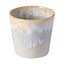 Szkliwo ma minimalne pęknięcia podpowierzchniowe na zielonym kubku. Szary na...