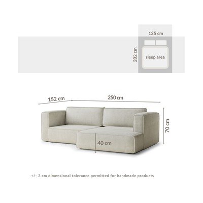 Kremowy rozkładany/ze schowkiem narożnik z tkaniny szenilowej (prawostronny/z szezlongiem) Velto – Maison de Rêve
