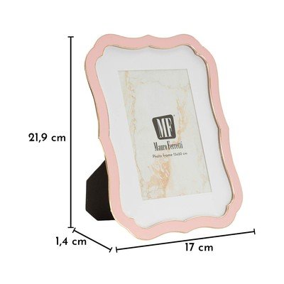 17x22 cm, stojąca, metalowa/szklana, jasnoróżowa, rozmiar zdjęcia: 15x20