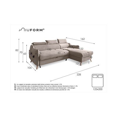 W razie potrzeby sofę tę można również łatwo rozłożyć na wygodne łóżko dla 2 osób.