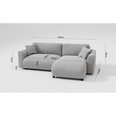 Aksamitny, rozkładany/ze schowkiem, prawostronny/lewostronny/strona zmienna/z szezlongiem, szary, trzyosobowy, szerokość 235 cm