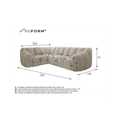 Beżowy narożnik (lewostronny/w kształcie litery L) Shell – Miuform