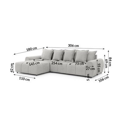 Jasnoszary narożnik (lewostronny/z szezlongiem) Albane – Ropez