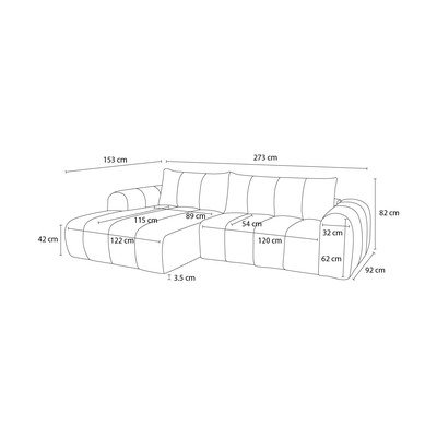 Lewostronny/z szezlongiemJasnoszaryTrzyosobowySzerokość 272 cmGłębokość 153 cmGłębokość siedziska 54 cm