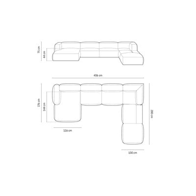 Narożnik modułowy MartinaZ tkaniny szenilowej, prawostronny/w kształcie litery U, szary, powyżej 4 osób, szerokość 406 cm
