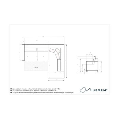 Rozkładany/ze schowkiemLewostronny/w kształcie litery LSzaryTrzyosobowySzerokość 240 cm