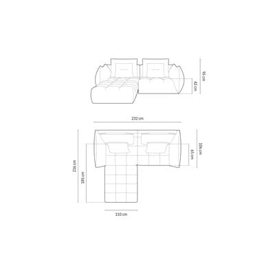Prawostronny/lewostronny/strona zmienna/z szezlongiem, szary, trzyosobowy, szerokość 232 cm