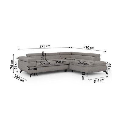 Z tkaniny szenilowejCzęściowo rozkładany/rozkładany/ze schowkiemPrawostronny/w kształcie litery LJasnoszaryOdpowiedni dla zwierząt domowych/plamoodpornyCzteroosobowySzerokość 275 cm