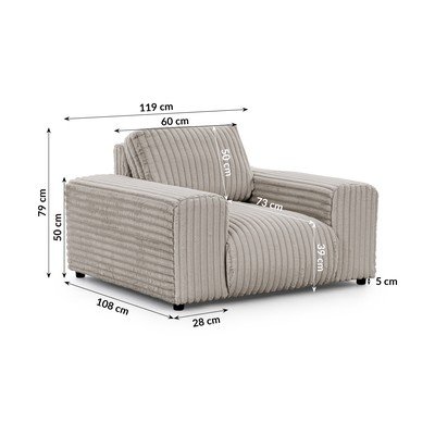Jasnoszary sztruksowy fotel Justin – Ropez