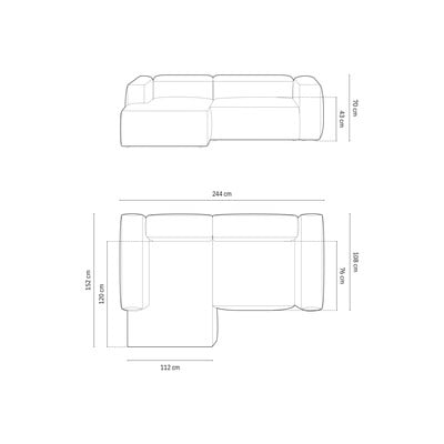 Sztruksowy, lewostronny/z szezlongiem, jasnoszary, trzyosobowy, szerokość 244 cm