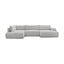 Sztruksowy, rozkładany/ze schowkiem, lewostronny/z szezlongiem, jasnoszary, czteroosobowy, szerokość 314 cm