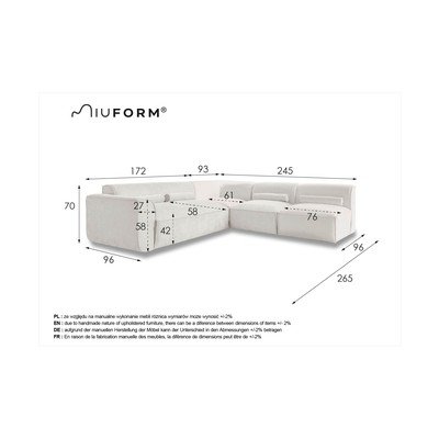 Prawostronny/w kształcie litery LZielonyPowyżej 4 osóbSzerokość 265 cmGłębokość 245 cmGłębokość siedziska 58 cm