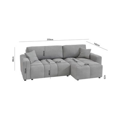 Rozkładany/ze schowkiemPrawostronny/lewostronny/strona zmienna/z szezlongiemJasnozielonyTrzyosobowySzerokość 233 cm
