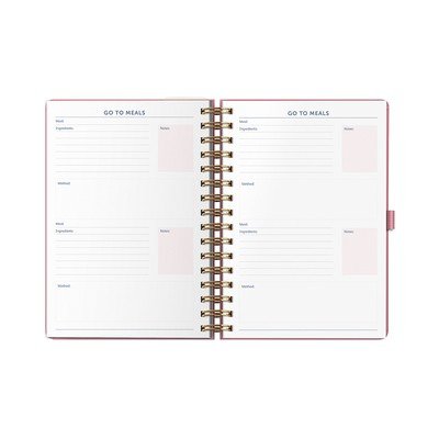 Kalendarz obejmuje 17 miesięcy od sierpnia do grudnia następnego roku. Umożliwia tygodniowe planowanie w podwójnym harmonogramie, oddzielnie dla pracy i domu. Poręczna kieszeń umożliwia przechowywanie ważnych notatek lub wizytówek w jednym miejscu, dzięki czemu już nigdy ich nie zgubisz.
