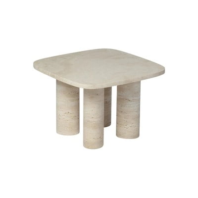 Minimalistyczny stolik marki Blomus, zaprojektowany przez projektanta Sebastiana Herknera, wykonany jest z trawertynu. Jest to kamień charakteryzujący się unikalnym kolorem, fakturą i porowatą powierzchnią. Dzięki temu każdy egzemplarz jest unikatowy.