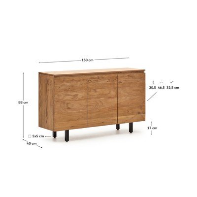 Z litego drewna akacjowegoPowłoka: bielenieW naturalnym kolorzeSzerokość 150 cmWysokość 88 cmGłębokość 40 cm