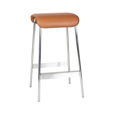 2 szt., tapicerowane, z imitacji skóry, koniakowe/w kolorze srebra, wysokość siedziska 75 cm