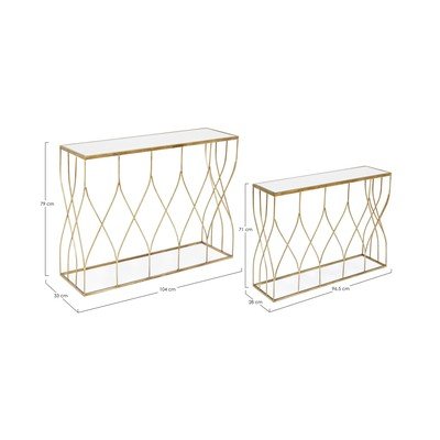 2 szt., ze szklanym blatem, w kolorze złota, 33x104 cm, wysokość 79 cm