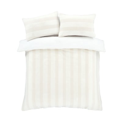 Dwuosobowa, zapinana na guziki, bez prasowania/ciepła, z mikropluszu, w paski, kremowa, 230x220 cm