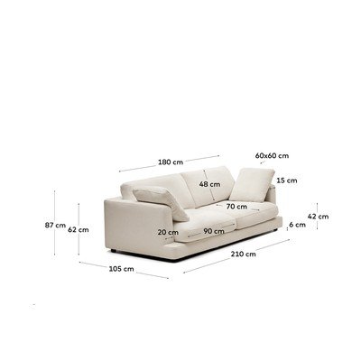 Z tkaniny szenilowej, beżowa, trzyosobowa, szerokość 210 cm