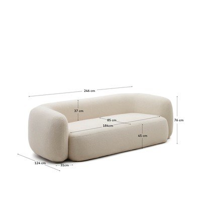 Z materiału bouclé, kremowa, trzyosobowa, szerokość 246 cm