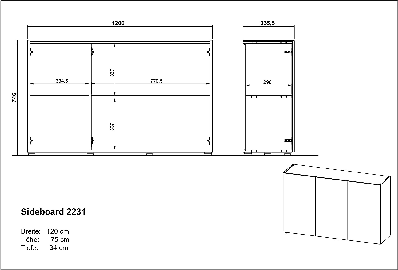 W dekorze dębuZ płyty wiórowejPowłoka: melaminaKremowaSzerokość 120 cmWysokość 76 cmGłębokość 34 cm
