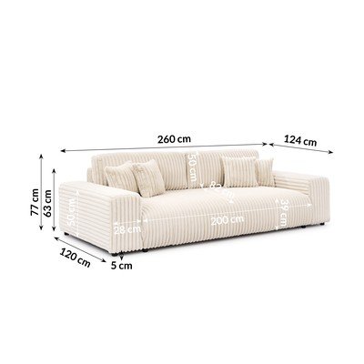 SztruksowaRozkładana/ze schowkiemKremowaWodoodporna/plamoodpornaTrzyosobowaSzerokość 260 cm