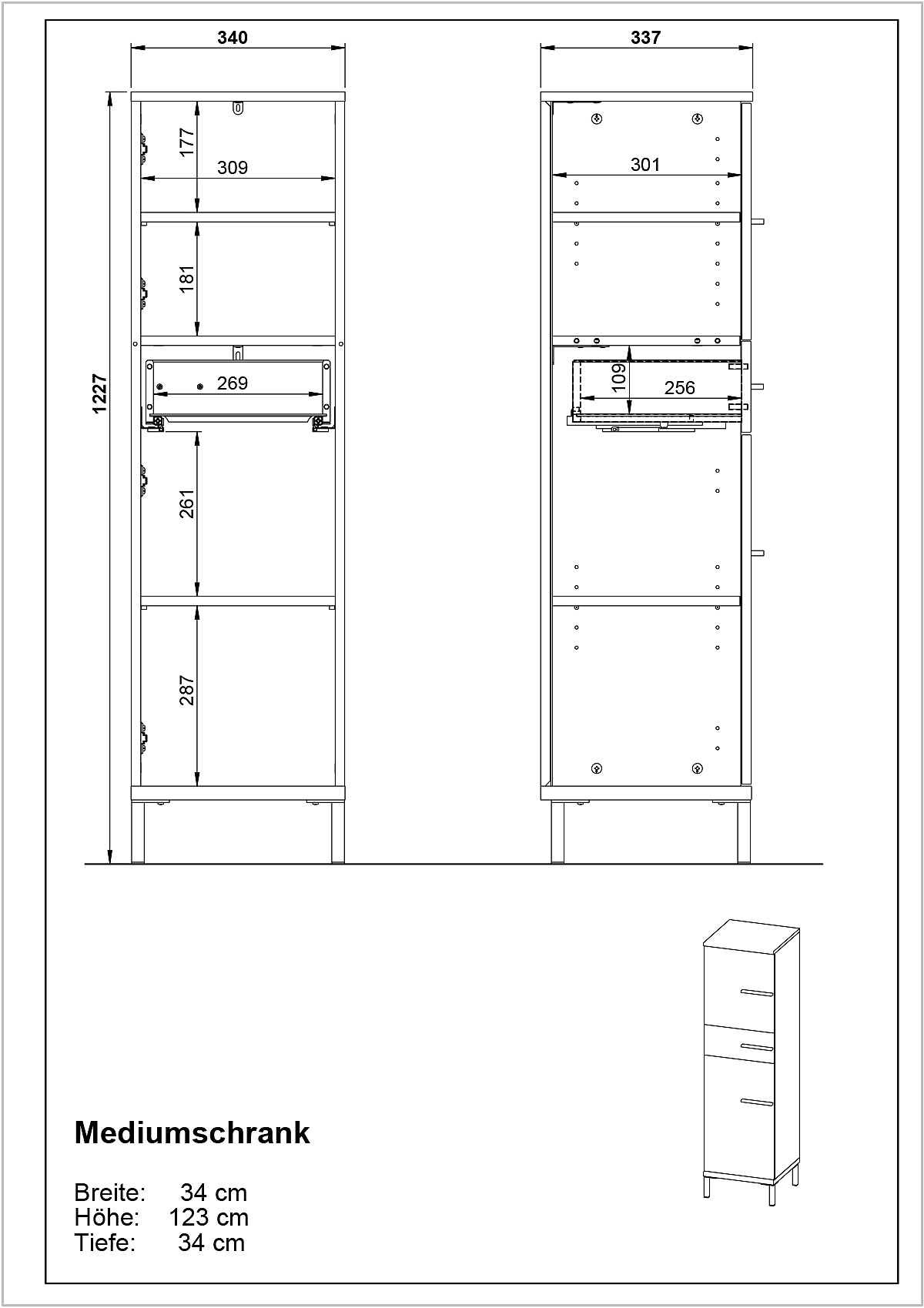 Wysoka/wąskaZ matowym wykończeniemZ płyty wiórowejPowłoka: melaminaKremowaSzerokość 34 cmWysokość 123 cmGłębokość 34 cm