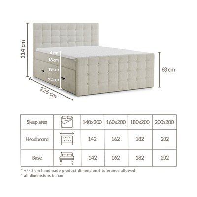 200x200 cm, ze schowkiem, tapicerowane, z materacem/z topperem, sztruksowe, kremowe