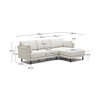 Z tkaniny szenilowejPrawostronny/lewostronny/strona zmienna/z szezlongiemKremowyCzteroosobowySzerokość 260 cm