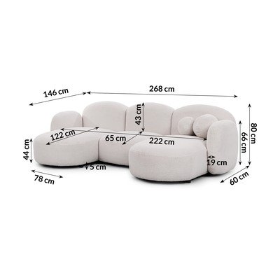 Kremowy narożnik z materiału bouclé (prawostronny/z szezlongiem) Orbit – Ropez